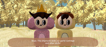 In late autumn, a chipmunk stole a game cartridge and other gadgets from the backpacks of two little children. Determined to get their things back, they chased the chipmunk into a mysterious forest, where creatures were busily stocking up on food—mostly acorns—and gathering logs to prepare for the winter. At the forest’s entrance, the boys noticed acorn shells scattered across the ground and decided they’d have to sneak in Metal Gear Solid style.