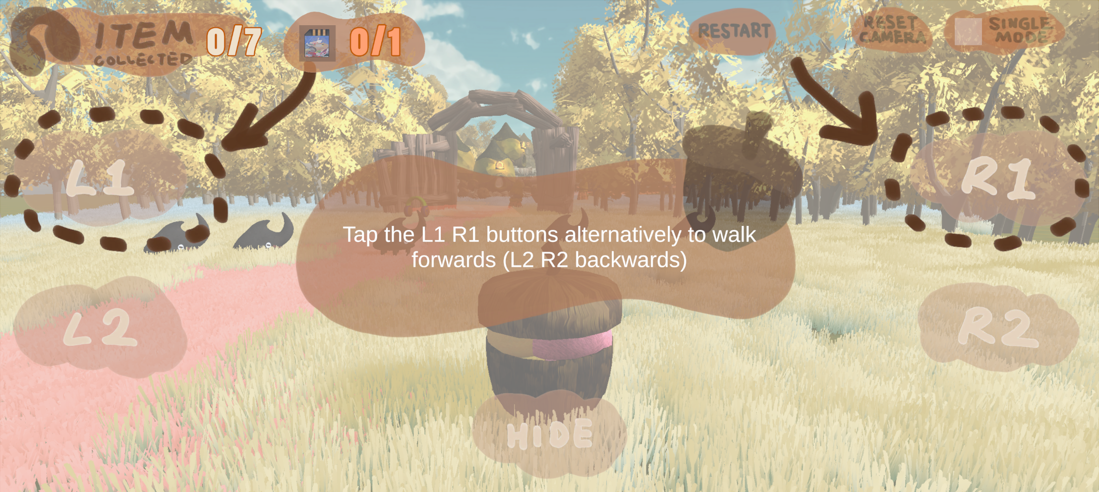 - Walk - 'TAP' L1 R1 alternatively to walk forward, and L2 R2 to walk backwar